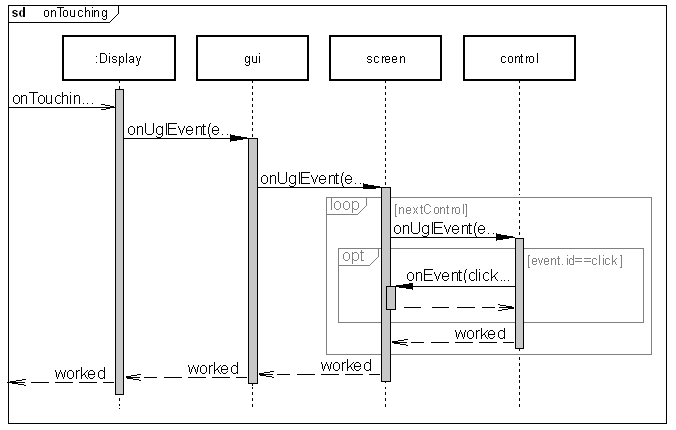 ====== Einfache Steuerelemente mit der µGL ====== Grafische Benutzeroberflächen dienen fast immer der Interaktion mit dem Benutzer. Daraus folgt, dass dieser nicht nur Informationen vom System angezeigt bekommt sondern auch Eingaben tätigt. Das Paket //[[http://www.myugl.de/_referenz/v005/UglControls.htm|UglControl]]// stellt neben dem statischen Text unter anderem folgende Steuerelemente zur Verfügung: * Button * Checkbox * Textfeld * ProgressBar ====== Die Aufgabe ====== Es ist eine Beispielanwendung zu entwickeln, in der die Steuerelemente //Schaltfläche//, //Textfeld//, //Auswahlfeld// und //Fortschrittsbalken// verwendet werden. ====== Vorbereitung ====== Falls Sie nicht in der Vorgehensmodell-Ebene sind, navigieren Sie diese bitte an (nach oben). Wenn das Projekt nicht mehr geöffnet ist, öffnen sie das SiSy UML-Projekt wieder. Legen Sie ein neues Klassendiagramm an und wählen Sie die Sprache //ARM C++//. Öffnen Sie das Klassendiagramm. Suchen Sie im Libstore mit dem Suchbegriff //"GUI"// nach dem Grundgerüst für eine µGL GUI Anwendung. Beachten Sie die Zielhardware, z.B. STM32F407 oder STM32F429. >>><flashplayer width="600" height="475" position="0">file=http://youtu.be/90PBa7zNTSo</flashplayer> Die geladene Vorlage sollte der folgenden Darstellung entsprechen: >{{::uglgui_gg.png?direct&800|}} Öffnen Sie das Paket //MeineBildschirme// in einem neuen Fenster, indem Sie das Paket selektieren und im rechte Maustasten-Menü //"im neuen Fenster öffnen"// wählen. Löschen Sie die Attribute und den Inhalt der Operationen aus der Klasse //StartForm//. >>>{{::inneuemfenster.png?direct&300|}} {{::emptystartform.png?direct&300|}} ====== Grundlagen zu aktiven Steuerelementen ======= Die Steuerelemente reagieren aus Anwendersicht auf Berührungen. Tatsächlich ist es ein durchsichtiges Touch-Panel, welches über dem Display angeordnet ist und die Berührungen erfasst. Über das Template //UglTouch// wurde der Displayklasse die Funktionalität des Touch-Panel zugewiesen und an das µGL Ereignissystem angebunden. Der Signalverlauf innerhalb der µGL Komponenten wird durch das folgende Sequenzdiagramm vereinfacht abgebildet. >>{{::seqclickevent.png?direct&700|}} Jedem aktiven Steuerelement kann eine Ereignisnummer, das //clickEvent//, zugewiesen werden. Diese identifiziert beim Verarbeiten der Ereignisse, welches Steuerelement vom Anwender betätigt wurde. ====== Entwurf der Anwendung einfacher Steuerelemente ====== Die folgende Darstellung zeigt die geplante Anwendung mit zwei Schaltflächen, einem Fortschrittsbalken und Auswahlfeldern. >>>{{::entwurfeinfachesteuerelemente.jpg?direct&500|}} ====== Realisierung der Anwendung einfacher Steuerelemente ====== Um die Übersicht zu behalten, implementieren wir die Beispielanwendung in zwei Schritten. * [[Realisierung einfache Steuerelemente, Itteration 1]] * [[Realisierung einfache Steuerelemente, Itteration 2]] ====== Videozusammenfassung ====== >>><flashplayer width="600" height="475" position="0">file=http://youtu.be/m3mvnZDmdHY</flashplayer> >>>[[http://youtu.be/m3mvnZDmdHY|besser auf youTube]] ====== Nächstes Thema ====== * [[neue_bildschirme_mit_der_ugl_erstellen|einen neuen Bildschirm mit der µGL anlegen]] * [[start|zurück zur Übersicht]]